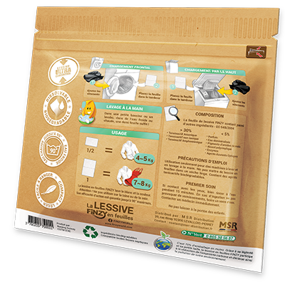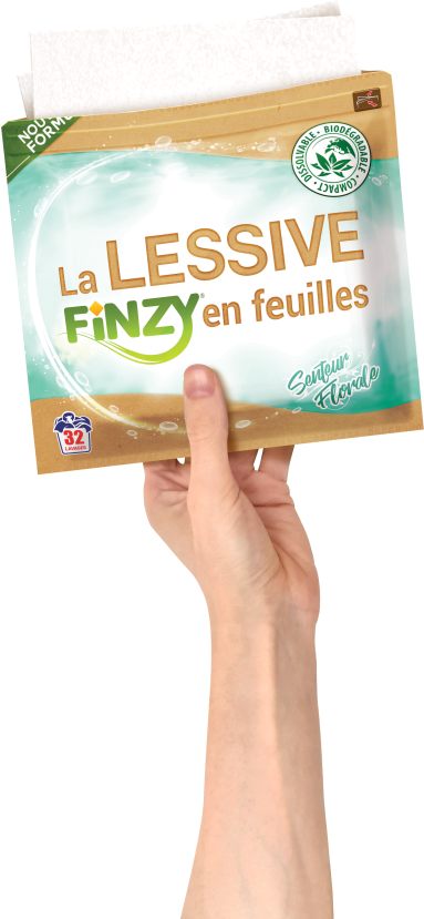 • C'est 70% d'emballage en moins, la lessive Finzy en feuilles participe à la réduction de l'empreinte carbonne et diminue ainsi la pollution de notre environnement